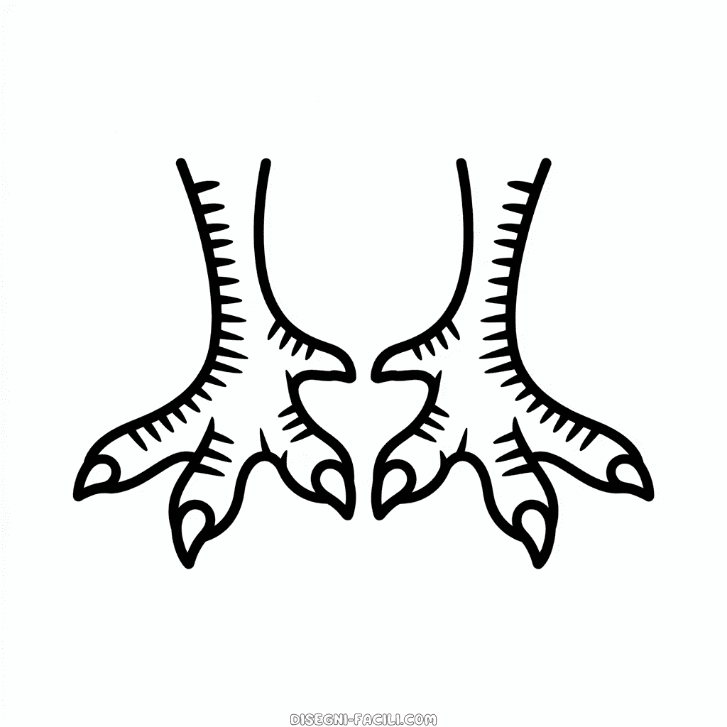 Disegno facile di piedi di tacchino da stampare gratuitamente, ideale per i piccoli che vogliono imparare a disegnare dettagli come le zampe di un tacchino in modo semplice e divertente. Scheda semplice da ricalcare o colorare per bambini. Immagine ad alta risoluzione, perfetta per la stampa in PDF in bianco e nero formato A4.